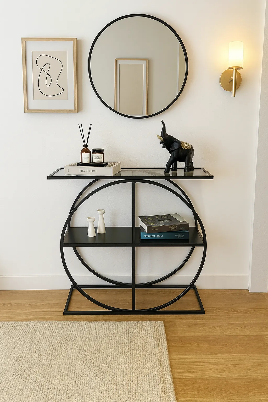 Tasarım vazo, modern abajur, şık tablo, seramik obje veya LED dekor aydınlatmaları çok iyi gider.